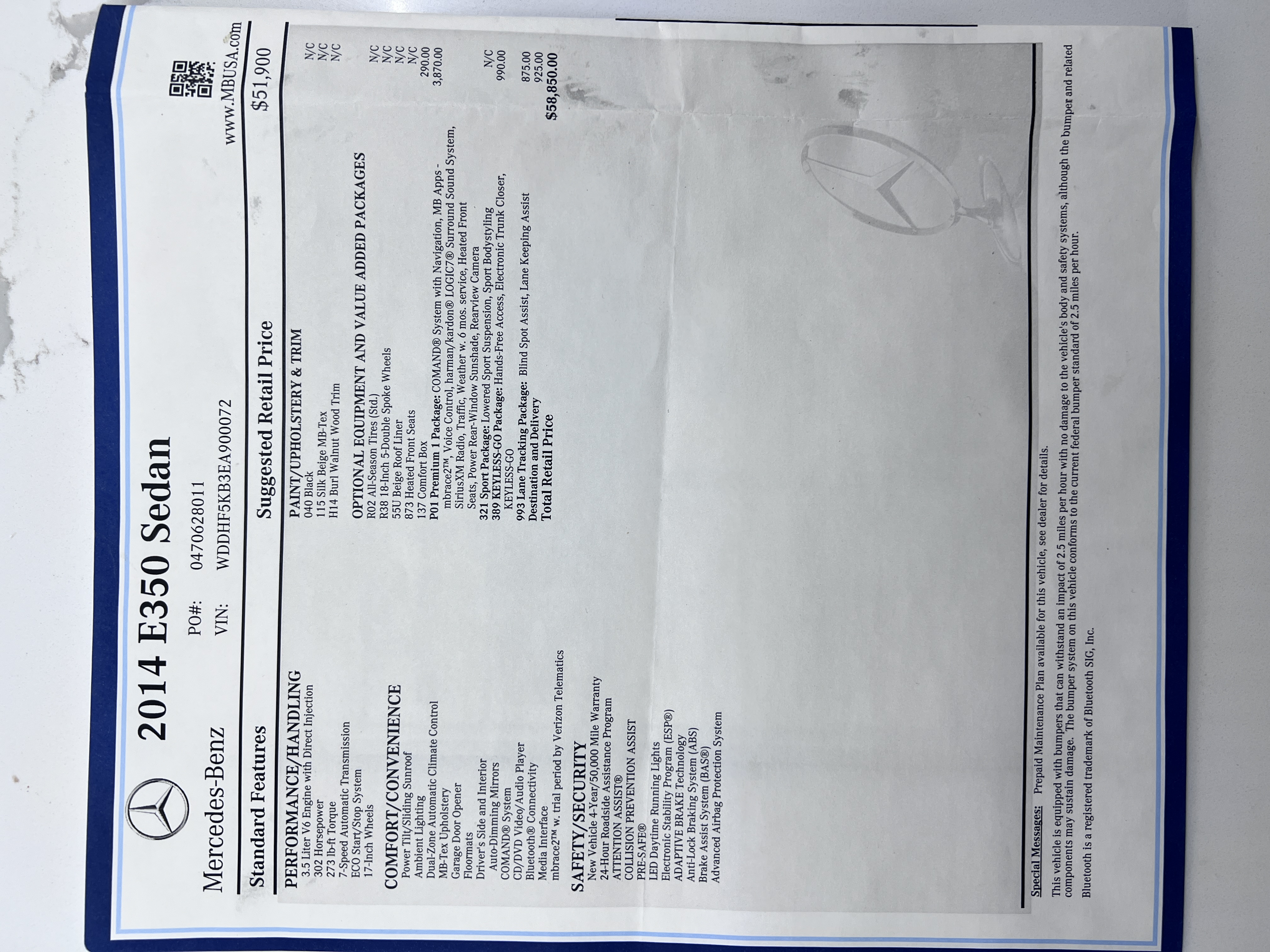 2014 Mercedes Benz * E350 * Sport Sedan w/Premium Package